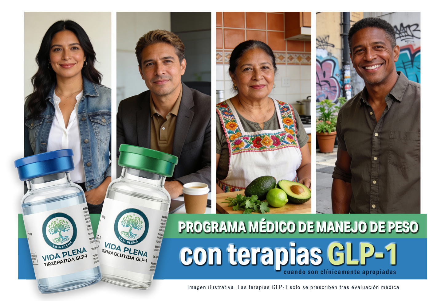 Las terapias GLP-1, cuando son apropiadas, forman parte de un programa supervisado por profesionales de la salud y solo se prescriben tras una evaluación clínica completa. Cada persona es diferente, por eso aquí no hay soluciones rápidas ni promesas irreales, solo apoyo real y basado en la ciencia. Dar el primer paso también es cuidarte.
